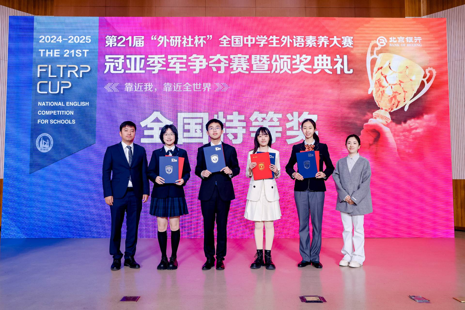 2025年4月13日,由北京外国语大学主办、外语教学与研究出版社承办、北京银行协办的第21届“外研社杯”全国中学生外语素养大赛冠亚季军争夺赛暨颁奖典礼在北京外国语大学成功举办。经过激烈角逐,北京十一学校的宋佳晨荣获本届大赛冠军,上海外国语大学附属浦东外国语学校的梁誉天和长沙市雅礼中学的倪炜薇分别获得亚军和季军。