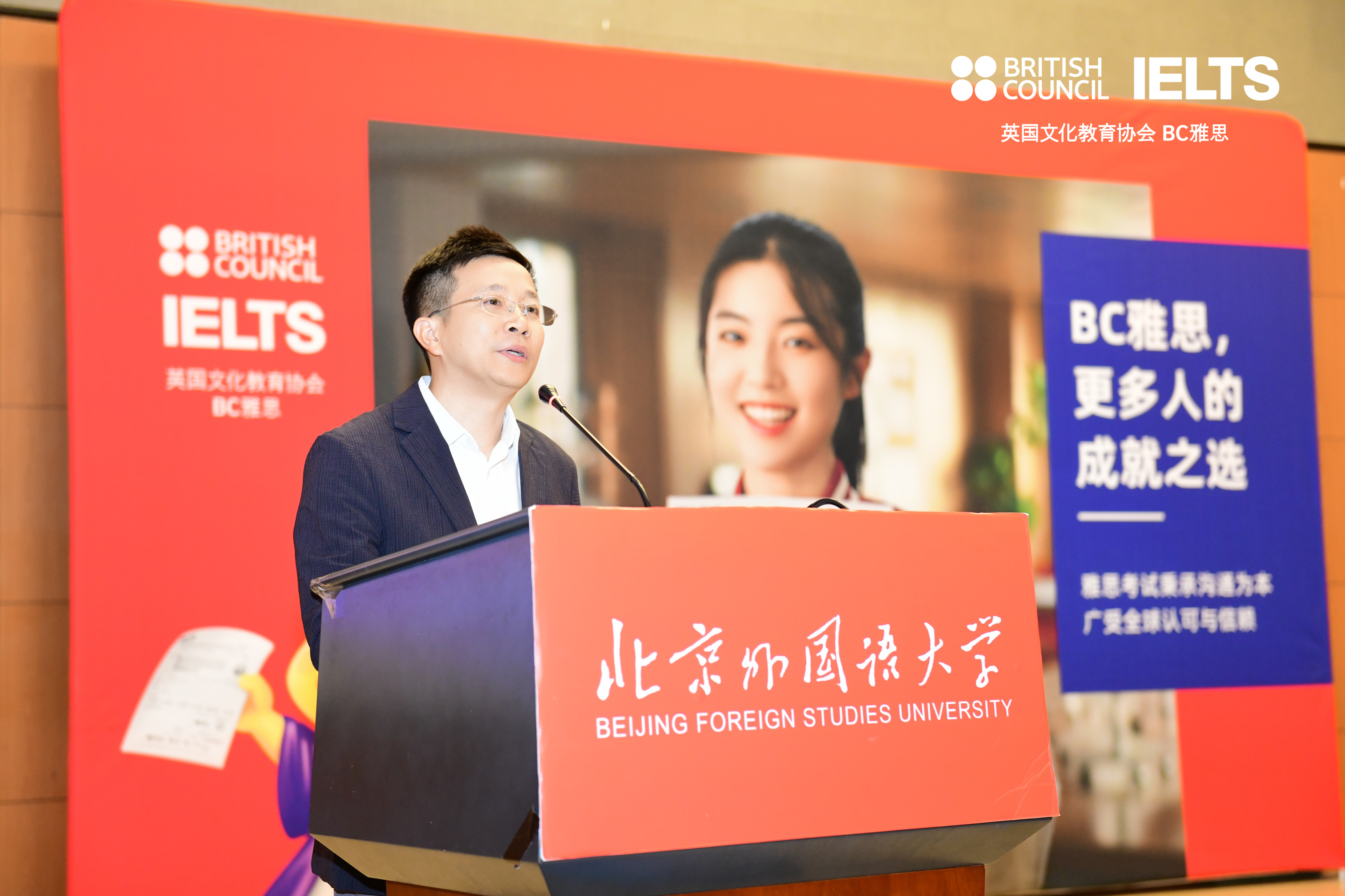 北京外国语大学学生工作部副部长、就业创业中心主任兰建华在致辞中对英国文化教育协会的到来表示热烈欢迎。他指出,优质的英语教学是北外的特色名片,过硬的英语能力与跨文化沟通能力,是北外毕业生在就业市场的突出竞争优势。当前,人工智能技术迅猛发展,单纯的语言技能已不足以应对未来挑战,用人单位更需要能够驾驭智能技术,且能顺畅用英语构建真实人际链接的复合型人才。雅思考试作为对英语能力的综合考察与国际认证,帮助考生在备考中开拓国际视野、丰富认知维度、提升输出能力,很好地契合了未来职场需求。最新数据显示,选择留学深造的北外本科毕业生中,超过75%升入QS世界百强高校,而他们中绝大多数是凭借出色的英语成绩获得了名校的“敲门砖”。他希望同学们能够Embrace(拥抱多元)、Engage(投身实践)、Empower(赋能他人),不仅收获出色的雅思成绩,更能以此为阶梯走向世界舞台,绘就自己的精彩未来!