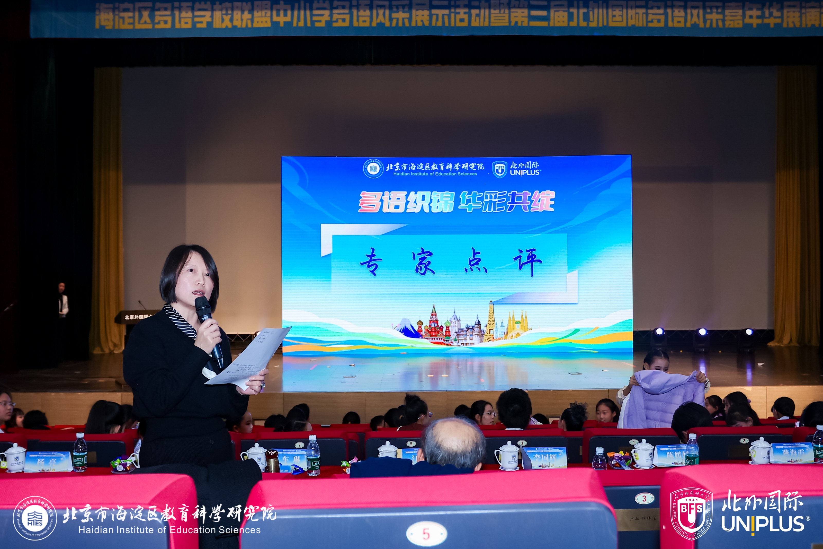 来自北京外国语大学和首都师范大学的五位专家对活动进行了精彩点评。他们纷纷表示,本次展演在节目构思、语言运用和文化表达上充分体现了青少年跨语种理解与艺术创造的独特魅力,特别是用外语讲述中国故事的表达方式,不仅展示了中小学多语教学的优秀成果,更体现了多语教育的文化强国使命。