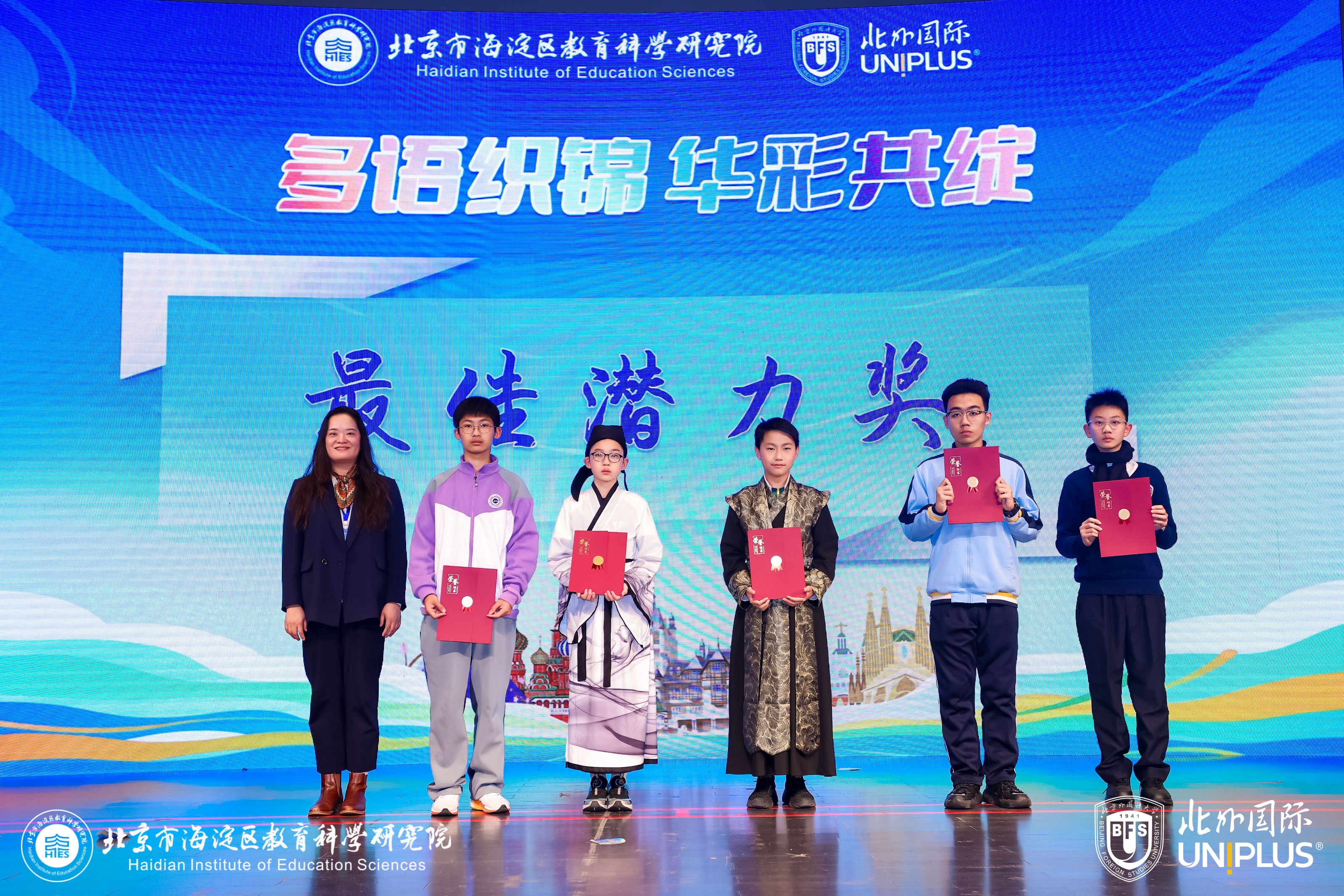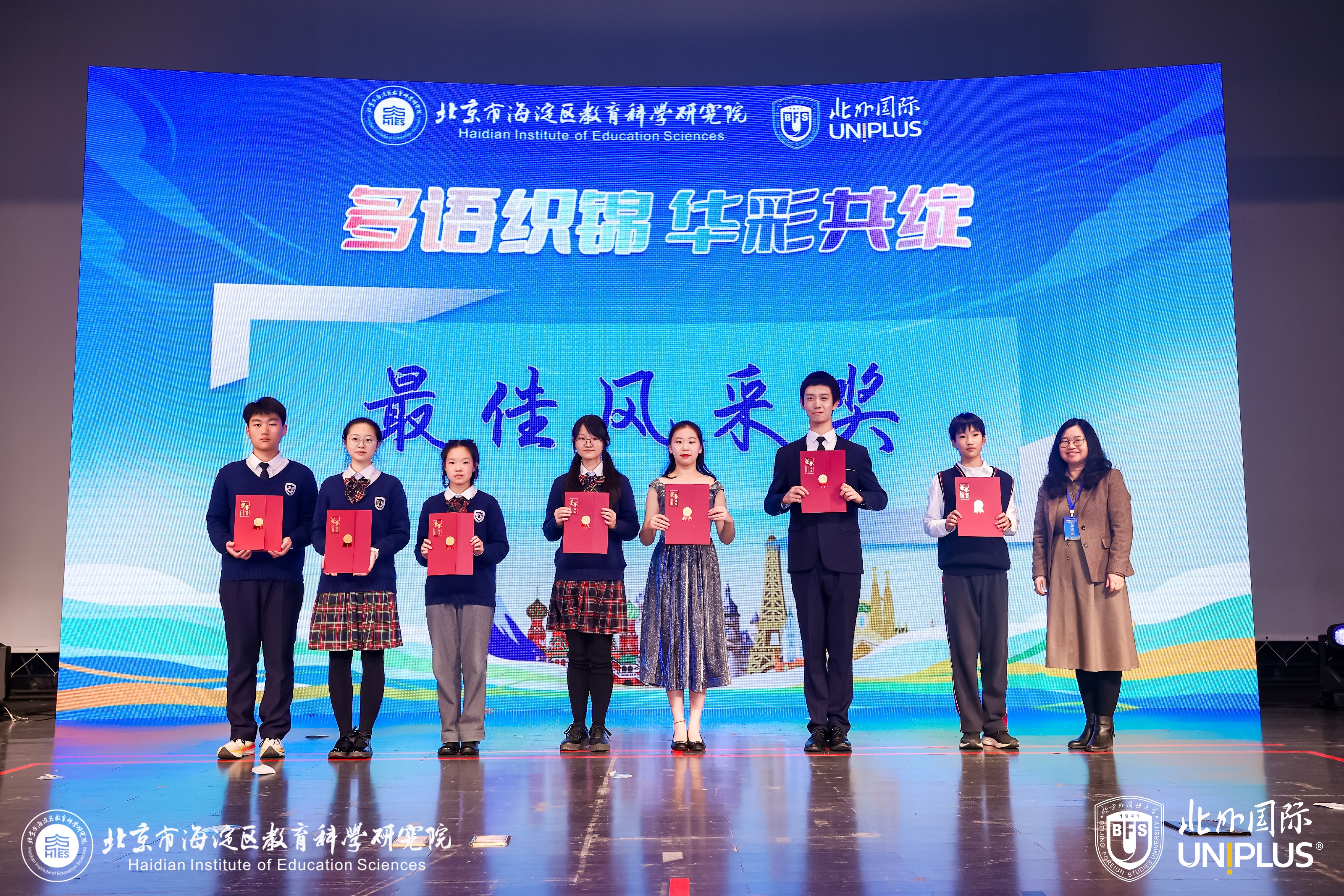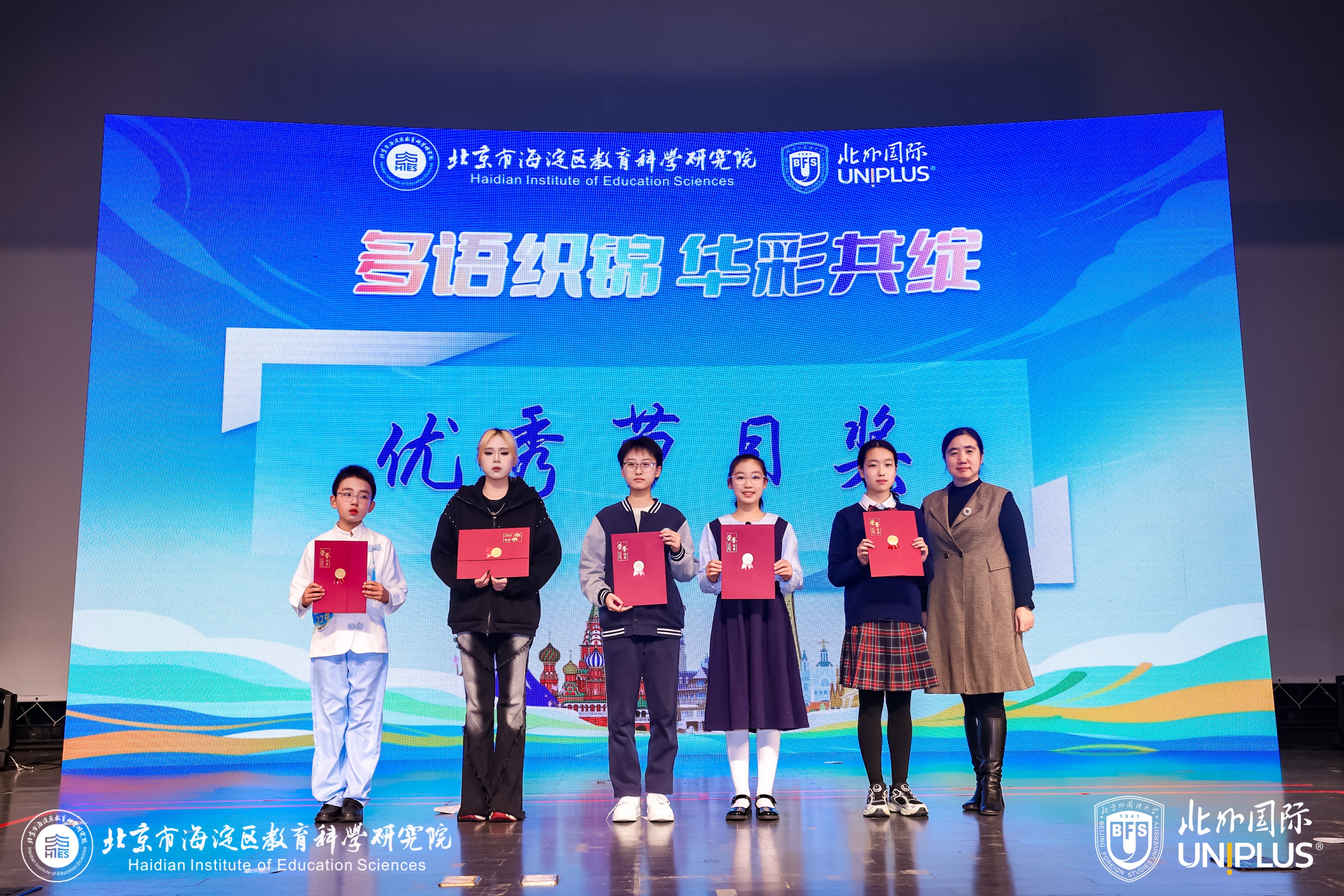 2025年11月28日,由海淀区教育科学研究院与北京外国语大学教育培训中心联合主办的“2025—2026年度海淀区多语学校联盟中小学多语风采展示活动暨第三届北外国际多语风采嘉年华全国展演活动”顺利举办。本次活动以“多语织锦·华彩共绽”为主题,旨在深入推进多语教育高质量发展,为青少年打造多元成才新路径,以培养具有国际视野和跨文化交流能力的复合型人才。